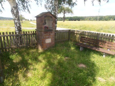 On the Franconian Red Wine hiking route, walk past the garages. Slightly ascending, turn left at the "Beim Pavillon" signpost to the pavilion in the vineyard. Turning right - always following the Franconian Red Wine hiking route - pass the Fuchsbau inn until you reach the "Rotes Kreuz" signpost. Now leave the Franconian Red Wine hiking route and follow the blue M Main hiking trail to the left across open terrain. After reaching a Marian shrine, cross the country road, then the Elsava river, and reach the natural park hiking parking lot "Schulzentrum" via a meadow path.