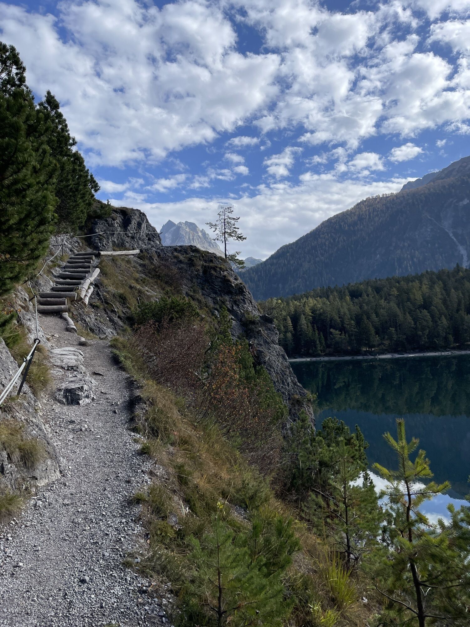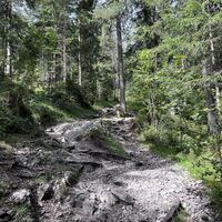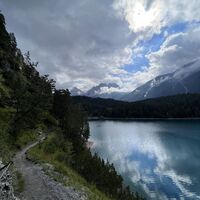 Ein schön gelegener See und bei klarem Wetter mit Sicht auf die Berge. Der Abstieg ist steil und wurzelig, aber dennoch gut zu machen.